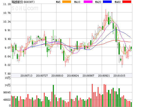 海越能源10月29日收盘报8.98,涨幅-0.55%, 5日内涨幅-1.21%。