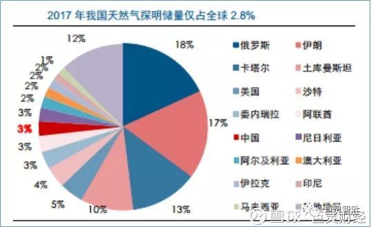 全球来看 , 俄罗斯及中东伊朗 、 卡塔尔等拥有极其丰富的天然气资源 。 从储采比来看 , 全球天然气储采比达到 52.6 年 , 几个主要天然气资源大国储采比也都在 50 年以上 , 总体来说全球天然气储量很乐观 。 然而目前我国天然气探明地质储量约为5.5万亿立方米 , 仅占全球探明储量2.8% , 资源极其稀缺 。