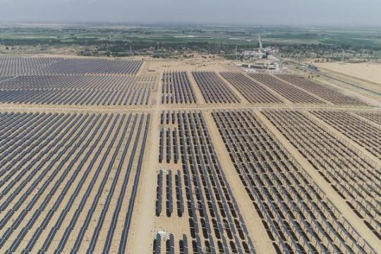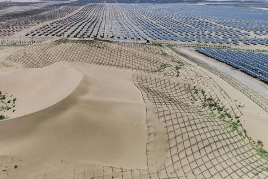 达拉特光伏发电应用领跑基地被国家能源局确定为内蒙古自治区唯一的示范基地,规模为200万千瓦,占地10万亩。建成后年发电量达40亿度,实现产值超15亿元,同时可有效防治沙20万亩。是统筹谋划光伏、光热、风电、生物质能源发展,带动文化旅游、健康医养、科技创新等多业态统筹并进,推动沙漠清洁能源经济、沙漠生态治理、沙漠有机农业和沙漠风情旅游的多产业融合发展项目。目前,一期50万千瓦已建成并网发电。(韩雪 王博雅 邢明)