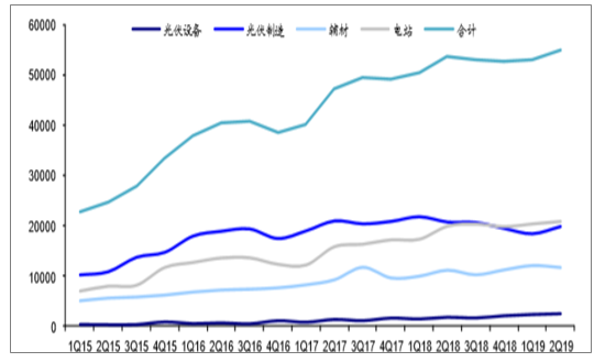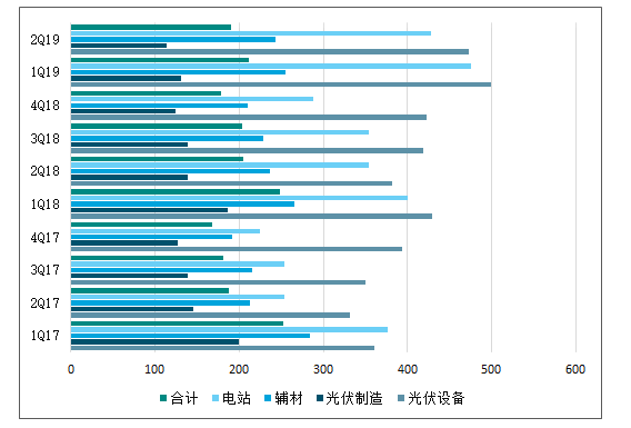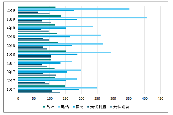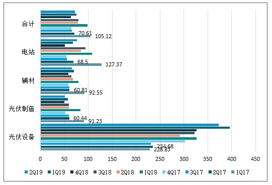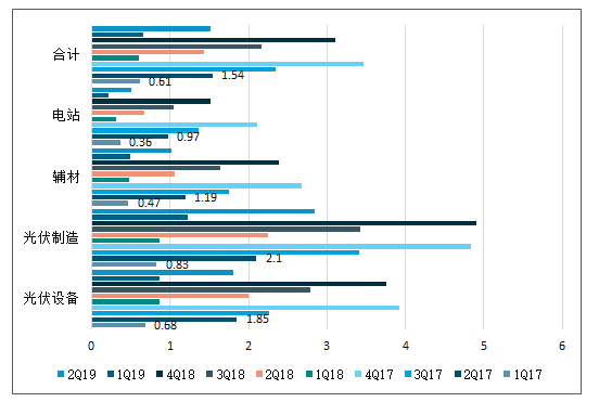 光伏行业2019年上半年营业周期为190天,其中存货周转天数与应收账款周转天数分别为72天、118天,同比、环比均呈现出下降趋势。