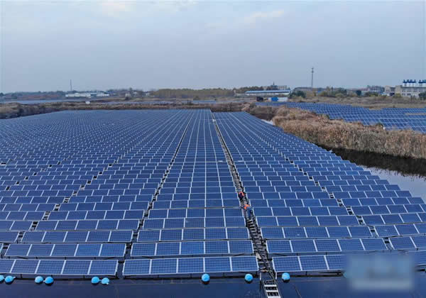 这是11月13日无人机拍摄的临西县灵溪湖水上光伏发电场。