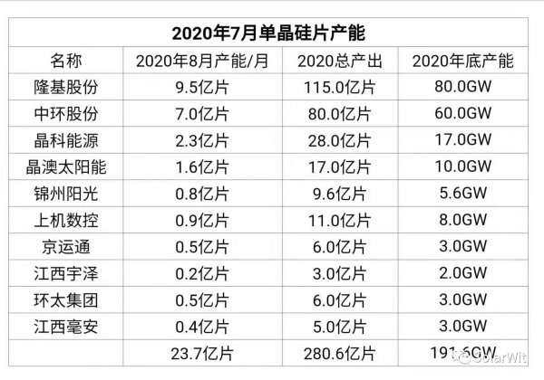 超额利润导致的结果是我们正迎来单晶硅片史无前例的扩产狂潮,展望2020年单晶硅片将会是产业上最过剩的环节,产能将会超过191GW,实际产出也会达到280.6亿片,纵使明年需求再好,也挡不住单晶硅片过剩的步伐。