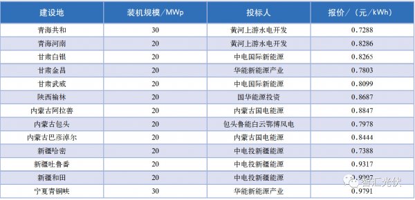 2010年7月国家启动第二批光伏特许权电站的招标,涉西部8省区13个项目,共计280MW。2010年光伏特许权招标最低价为0.73元/kWh,并且多数价格在0.82-0.91元/kWh区间内,具体如下表所示。