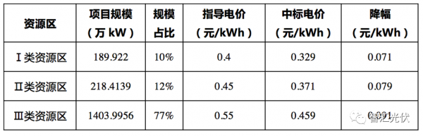 2019年,国家能源局推出的全国性的竞争电价政策。虽然标杆电价定在0.4元/kWh、0.45元/kWh、0.55元/kWh,但项目拿到的实际价格大幅低于知道电价,具体如下表所示。