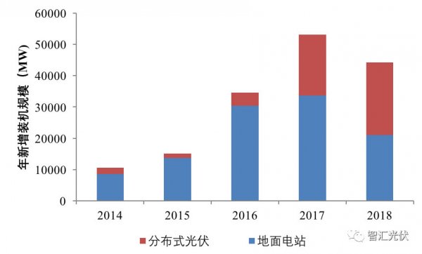 2014年~2018年的年新增装机在10~53GW之间,巅峰出现在2017年,具体如下表所示。