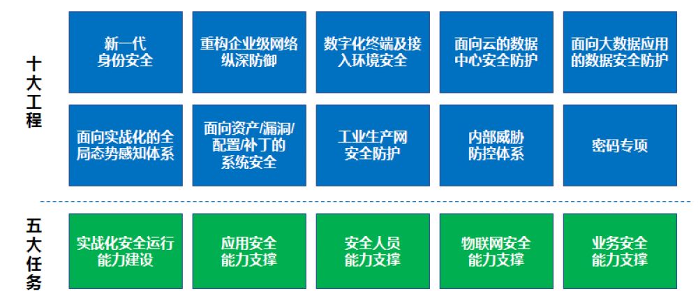 韩永刚强调,内生安全的落地需要全新的机制保障,将网络安全技术与信息化环境相聚合,将实战化安全运行与信息化运维工作相聚合。奇安信围绕新基建中“5G+智能”的各种业务场景,落地应用“新一代企业网络安全框架(内生安全框架)”,并以基于此框架的“十大工程、五大任务”为抓手,构建支撑企业数字化业务的能力型安全体系。